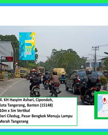 Lokasi: JI. KH Hasyim Ashari, Cipondoh, Kota Tangerang, Banten (15148) Ukuran: 10m x 5m Vertikal View: Dari Ciledug, Pasar Bengkok Menuju Lampu Merah Tangerang