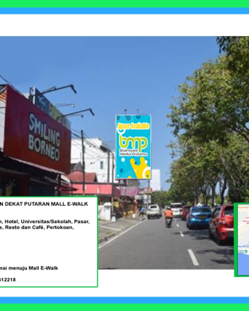 Lokasi : JL. JEND. SUDIRMAN (SIMPANG TIGA DAMAI) BALIKPAPAN POI : Ace Hardware, Hotel, Ewalk, Pentacity Mall, BSB, Universitas/Sekolah, Pasar, Kawasan Sentra Bisnis, Resto dan Cafe, Pertokoan, Perkantoran, dll Size : 5m x 10m Type: Vertikal/Frontlite View: Dari arah Balikpapan Permai menuju Mall E-Walk